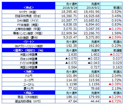 先週のマーケットの振り返り(2016/8/29-9/2)【ウィークリー】