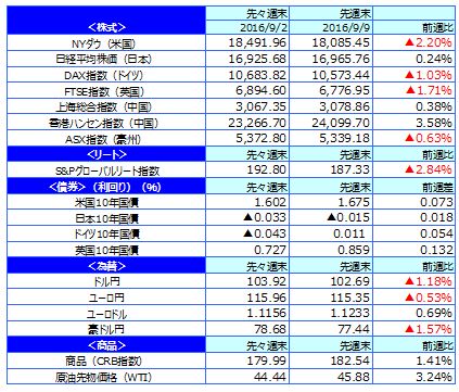 先週のマーケットの振り返り(2016/9/5-9/9)【ウィークリー】