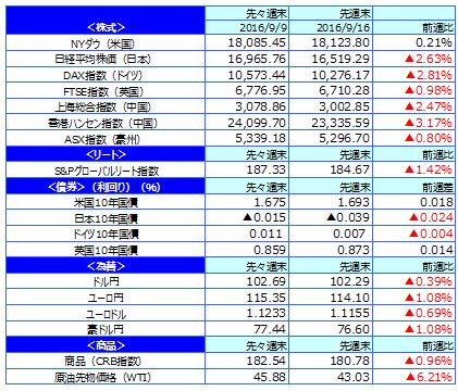 先週のマーケットの振り返り(2016/9/12-9/16)【ウィークリー】