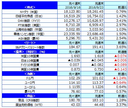 先週のマーケットの振り返り(2016/9/19-9/23)【ウィークリー】