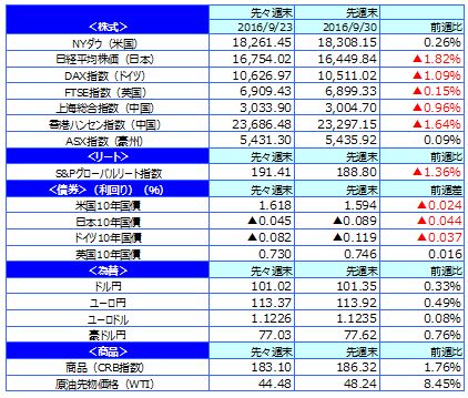 先週のマーケットの振り返り(2016/9/26-9/30)【ウィークリー】