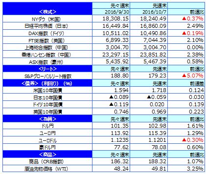 先週のマーケットの振り返り(2016/10/3-10/7)【ウィークリー】