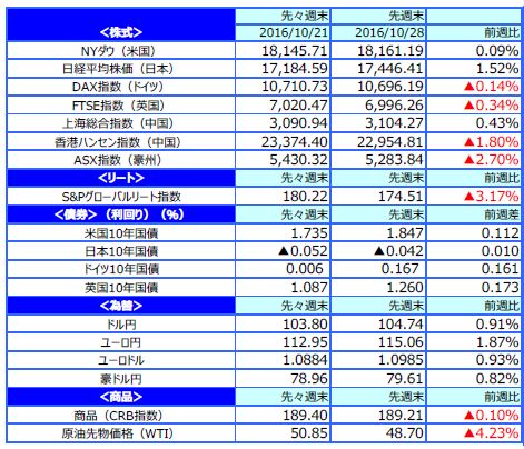 先週のマーケットの振り返り(2016/10/24-10/28)【ウィークリー】