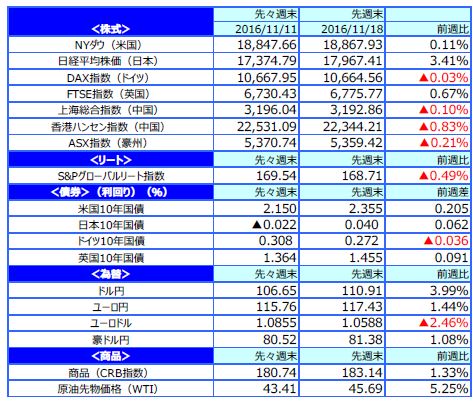 先週のマーケットの振り返り(2016/11/14-11/18)【ウィークリー】