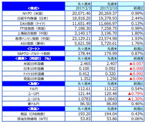 先週のマーケットの振り返り(2017/2/6-2/10)【ウィークリー】