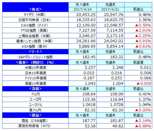 先週のマーケットの振り返り(2017/4/17-4/21)【ウィークリー】