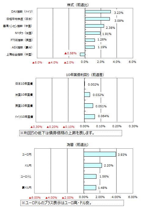 米国や欧州では、株式市場と同様に、地政学リスクへの警戒感が後退したことやフランスの第1回大統領選挙の結果で波乱が起きなかったことなどを受けて、リスク資産に資金が流れる中、安全資産である債券は売られ、長期金利は上昇しました。一方、日本では小動きとなりました。