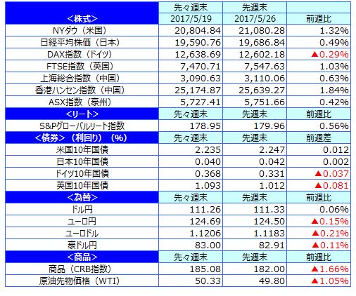 先週のマーケットの振り返り(2017/5/22-5/26)【ウィークリー】