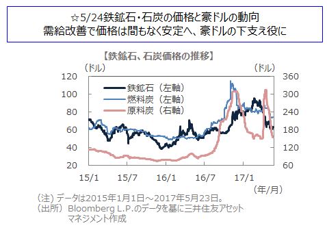世界の株式市場は、概ね上昇しました。米国株式市場は、24日発表の「FOMC」議事要旨で利上げがゆるやかにとどまるとの見方が強まり、上昇しました。欧州株式市場は22日に英国で自爆テロが発生しましたが、影響は限定的で、英国は上昇、ドイツは下落しました。日本株式市場では、米国株が上昇したこと、ドル円相場が円高一服となったことなどから、日経平均株価は上昇しました。一方、中国株式市場は、大手格付け会社による格下げはありましたが、小幅上昇となりました。