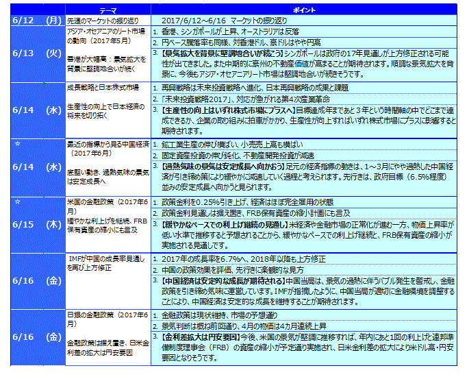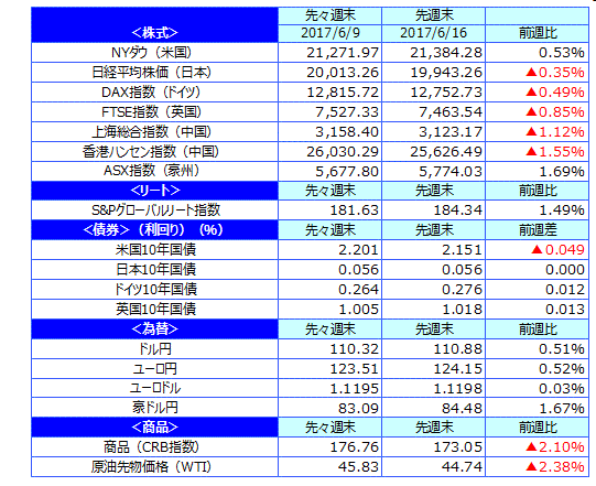 ホームマーケット週次・月次市場情報先週のマーケットの振り返り(2017/6/12-6/16)【ウィークリー】/マーケット情報・レポート - 三井住友DSアセットマネジメント
