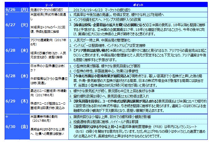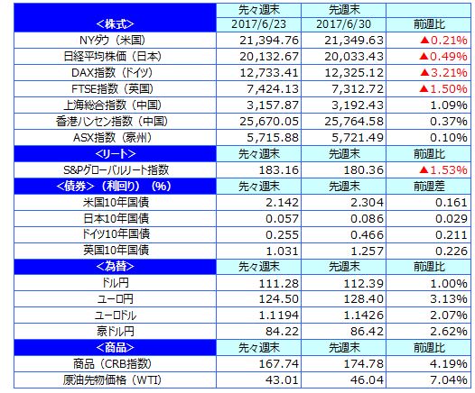 ホームマーケット週次・月次市場情報先週のマーケットの振り返り(2017/6/26-6/30)【ウィークリー】/マーケット情報・レポート - 三井住友DSアセットマネジメント
