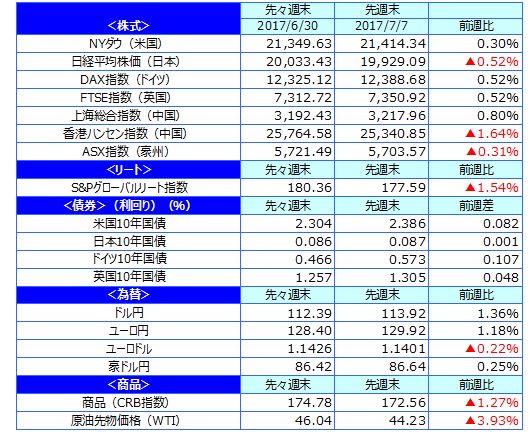 先週のマーケットの振り返り(2017/7/3-7/7)【ウィークリー】