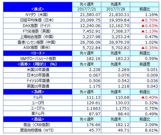 先週のマーケットの振り返り(2017/7/24-7/28)【ウィークリー】
