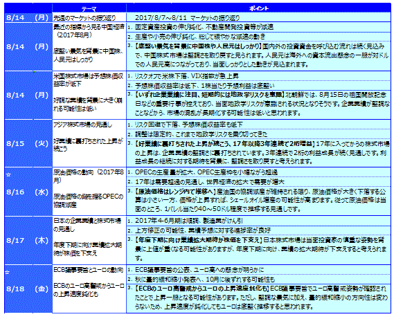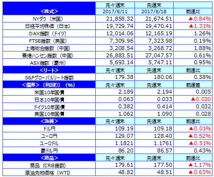先週のマーケットの振り返り(2017/8/14-8/18)【ウィークリー】