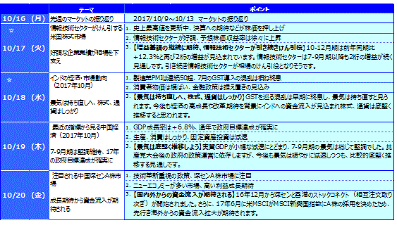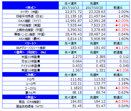 先週のマーケットの振り返り(2017/10/16-10/20)【ウィークリー】