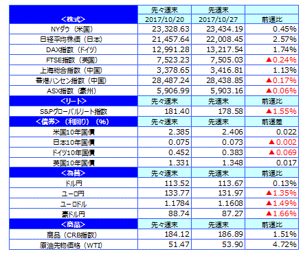 先週のマーケットの振り返り(2017/10/23-10/27)【ウィークリー】
