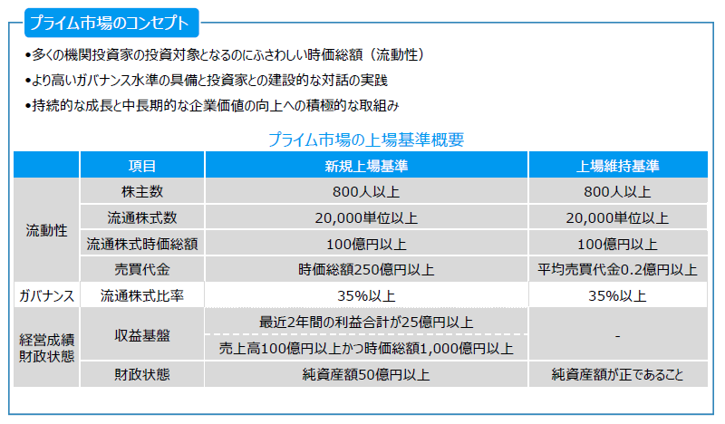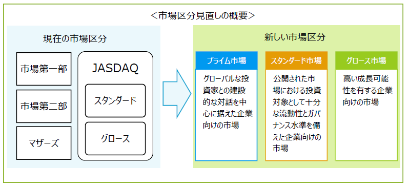 各市場区分のコンセプトを明確にし、上場企業の持続的な企業価値向上を積極的に促すため、東証は市場区分の⾒直しを⾏う予定です。