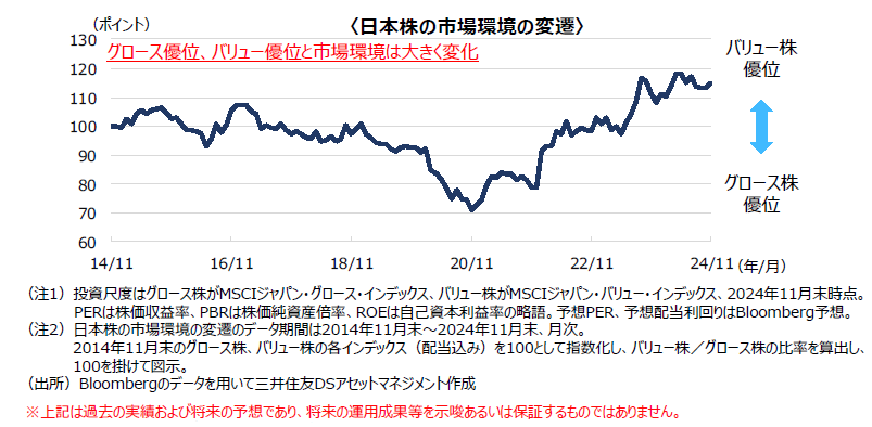 また、グロース株投資やバリュー株投資といった特定の運用スタイルに限定することなく運用するスタイルがあり、このような運用スタイルを市場型といいます。こうしたスタイルの中で、あらゆる市場局面で収益獲得を図る運用スタイルは「全天候型」といわれることもあります。このような運用スタイルはグロース株とバリュー株の優位性が変化し、タイムリーにとらえ難い市場環境でも、運用のパフォーマンスが期待できる運用スタイルの一つと考えられます。