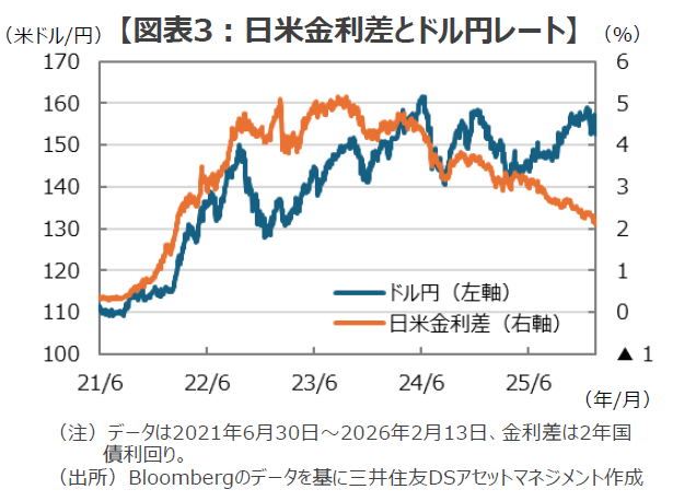 ■このうち、①については、結論から言えばその可能性は極めて限定的と見ていて良さそうです。というのも、ベッセント米財務長官の発言に呼応する形で2025年12月に日銀が利上げに踏み切ったことで、日米の協調による政策対応が今後も期待されるからです。ベッセント長官は2025年10月に、日本でのコストプッシュインフレへの対応について、「市場と対話しつつ、健全な金融政策を」と釘を刺し、日本に対して為替介入の前に利上げを実施するよう促していました。