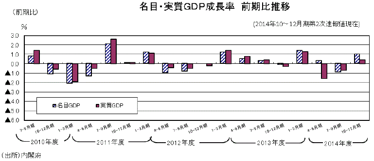 ●なお、14年度から15年度のゲタはしっかりしたプラスが見込まれ、政府の「平成27年度(2015年度)の経済見通し」の15年度実質経済成長率+1.5%の達成は今のところ十分想定内であると言えよう。