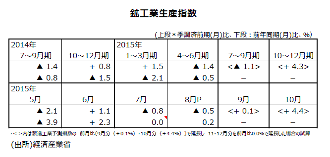 - 8月分鉱工業生産指数・前月比▲0.5%で2カ月連続の減少 -