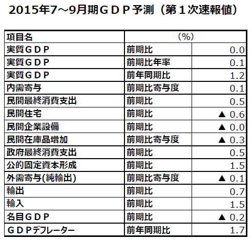 15年7〜9⽉期実質GDP(第1次速報値)予測