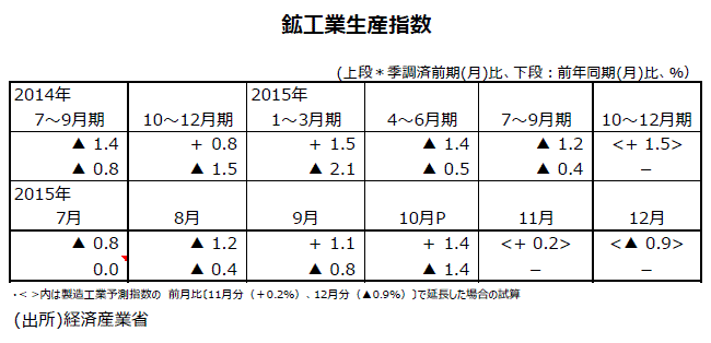 - 10月分鉱工業生産指数・前月比+1.4%で2カ月連続増加 -