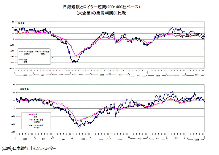 ●この予測は、日銀短観DIと連動性が高いことが知られている12月調査のロイター短観、12月調査のQUICK短観などを参考にした。