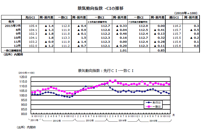 12月分景気動向指数(速報値)