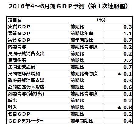 ●4~6月期の実質GDP第1次速報値・前期比が、熊本地震や円高基調などの状況下でも2四半期連続プラス成長になれば、足元の景気の底堅さを示すことになろう。
