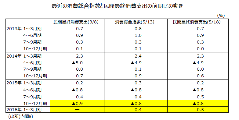 2016年1~3月期実質GDP(第1次速報値)について