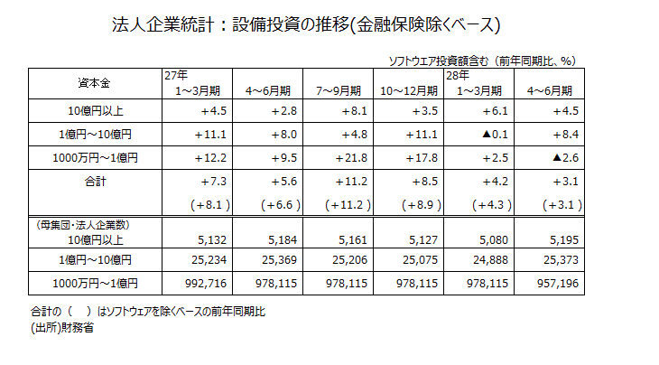 2016年4~6月期法人企業統計・設備投資などについて