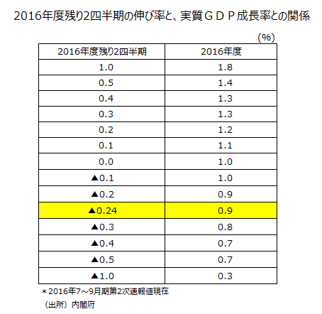 ―16年度残り2四半期・前期比年率▲0.9%で、内閣府年央試算+0.9%達成―