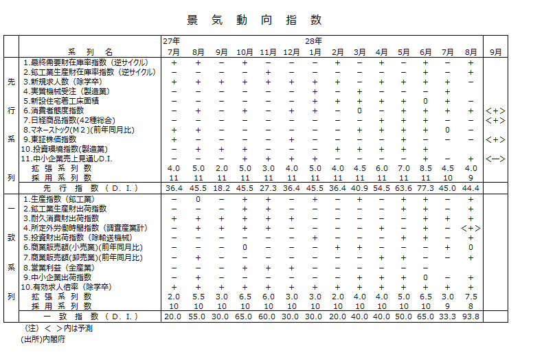 -8月分までの数字不変、9月分・10月分各々前月差+0.1ずつ上昇で「改善」に-