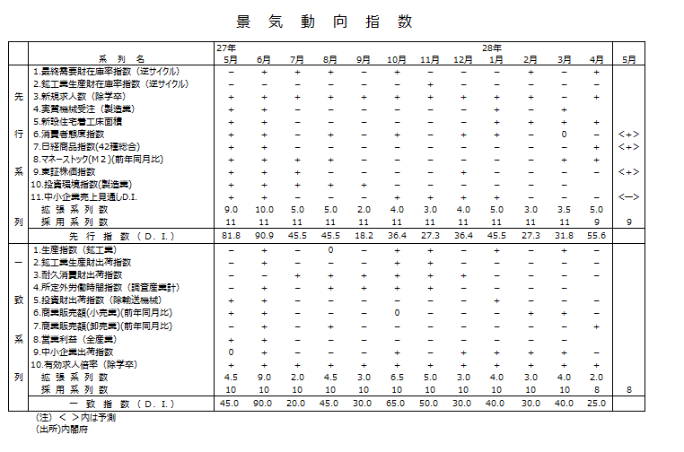 -3月分の一致CI3カ月後方移動平均の前月差マイナス転換で5月分も「足踏み」に-