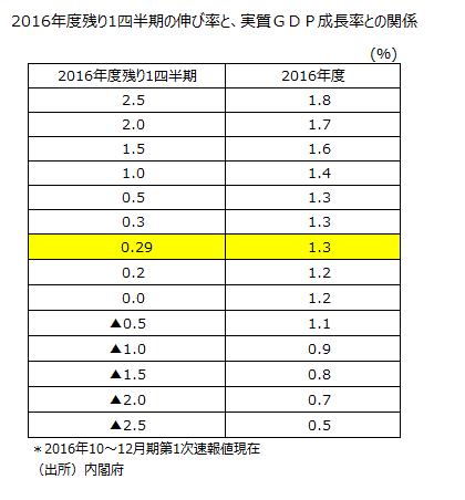 ―政府見通し16年度実績見込み+1.3%は1~3月期・前期比年率+1.2%で達成―