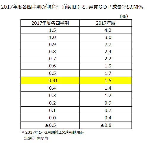 ―17年度は各四半期・前期比年率+1.7%で、政府見通し+1.5%を達成―