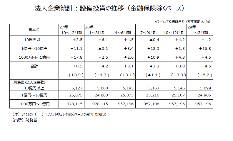 ―設備投資(除くソフトウェア)前期比+1.3%、前年同期比+5.2%―