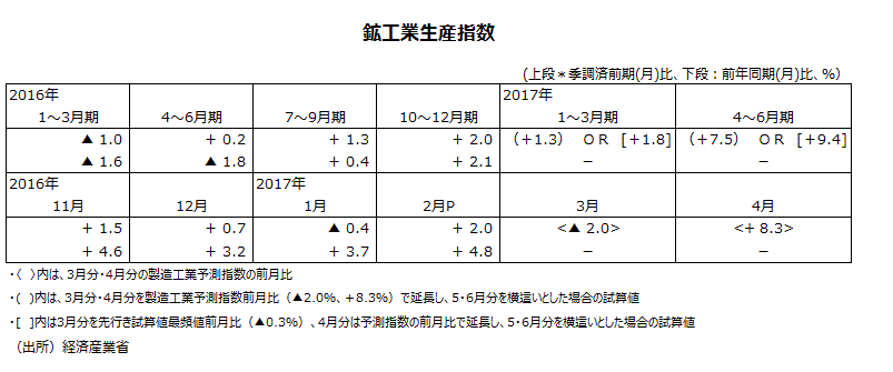 -2月分鉱工業生産指数・前月比+2.0%と2カ月ぶりの増加-