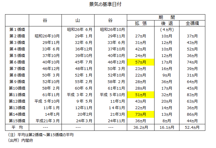 ●今年の11月上旬に発表される9月分まで「改善」が続くと、65年11月から始まった「いざなぎ景気」の57カ月を抜き、景気拡張の長さは戦後単独第2位の58カ月となる。