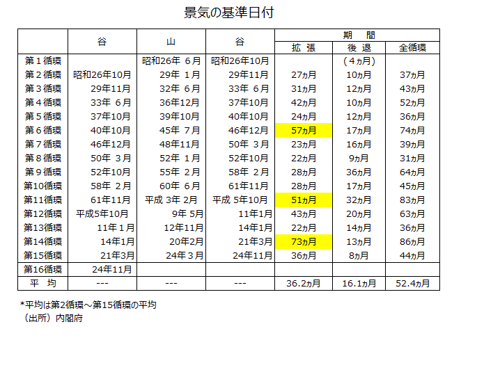 ●今年の11月8日に発表される9月分まで「改善」が続くと、65年11月から始まった「いざなぎ景気」の57カ月を抜き、景気拡張の長さは戦後単独第2位の58カ月となる。