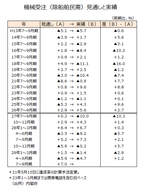 ―機械受注(除船電民需)7~9月期見通し前期比+7.0%、8・9月分ゼロでも同+5.3%―