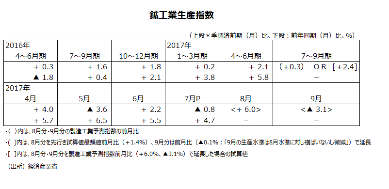 2017年7月分鉱工業生産指数・速報値について