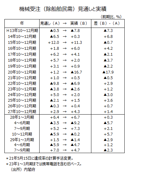 ―機械受注(除船電民需)10~12月期は過去7年中、6回実績が見通しを上回る―