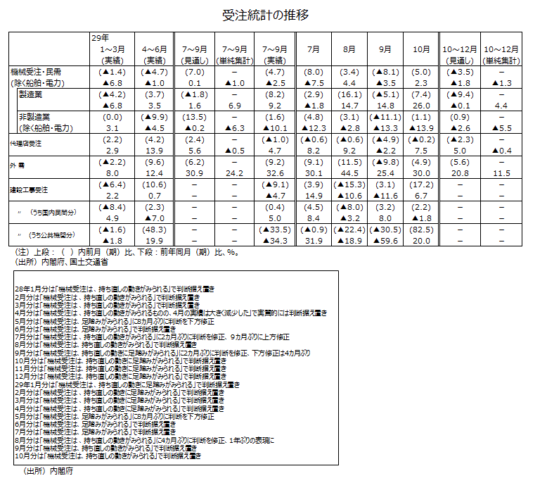 2017年10月分機械受注
