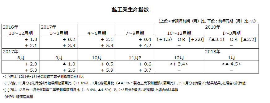 -10-12月期鉱工業生産指数は28年半ぶりの7四半期連続前期比増加に-