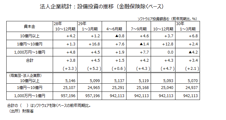 2018年1~3月期法人企業統計・設備投資などについて