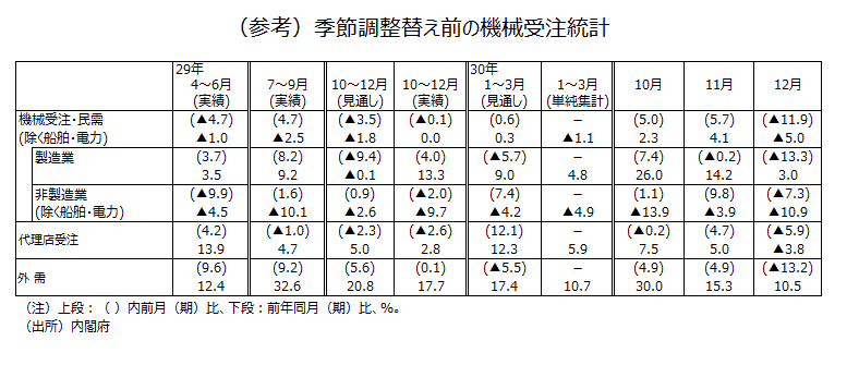 ―機械受注(除船電民需)2・3月分各々前月比ゼロでも、1~3月期前期比は+3.2%に―