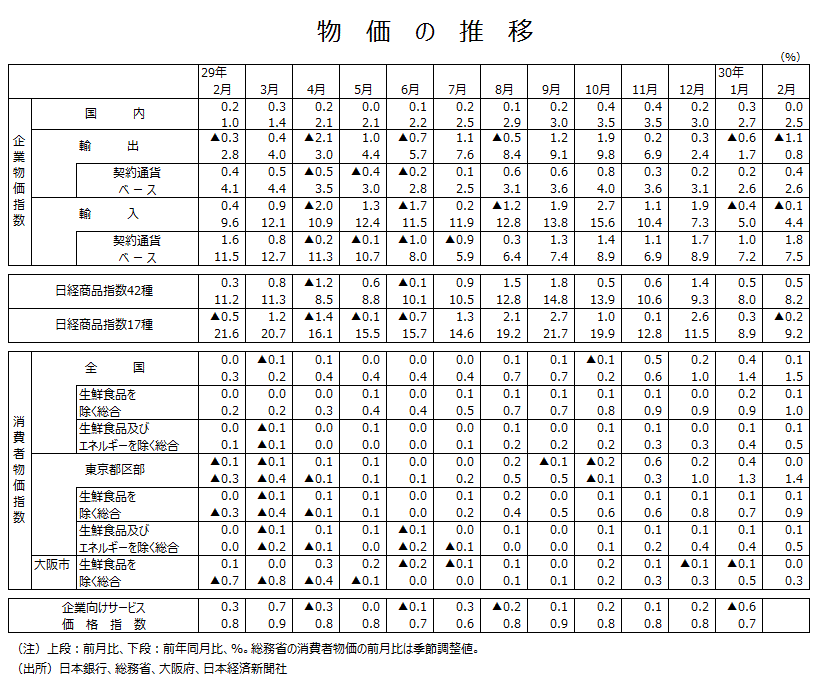 2018年2月分全国消費者物価指数について
