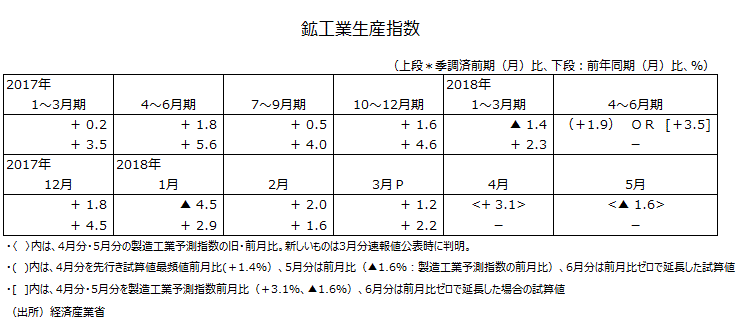 2018年3月分鉱工業生産指数・速報値について